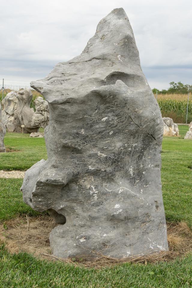 Mimoriadne odolný prírodný kameň (monolit) s neopakovateľnou textúrou, ideálny ako centrálny, exkluzívny a bezúdržbový prvok pre záhrady, terasy alebo komerčné priestory.