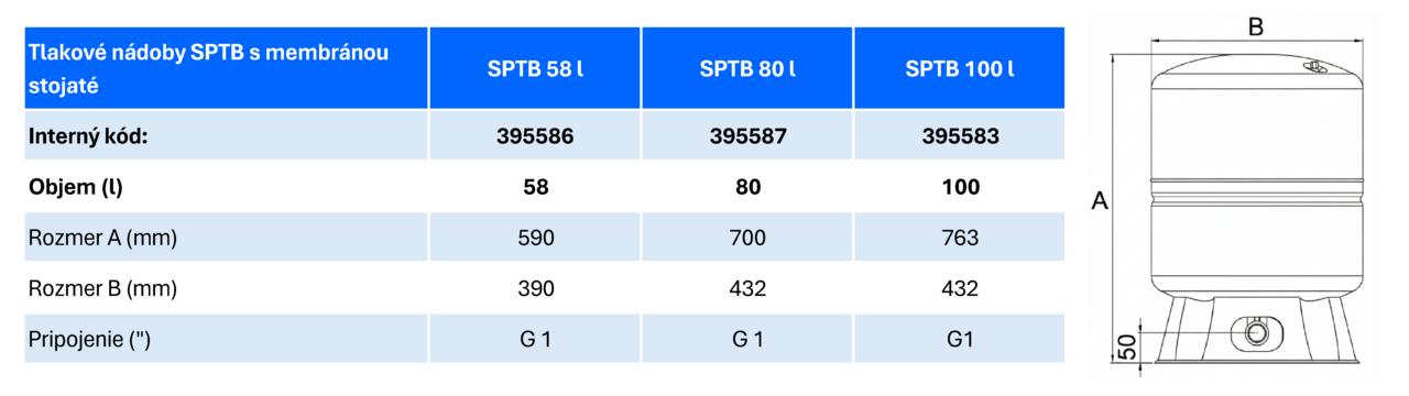 Stojatá tlaková nádoba SPTB 100 l s fixnou membránou a nerezovým pripojením