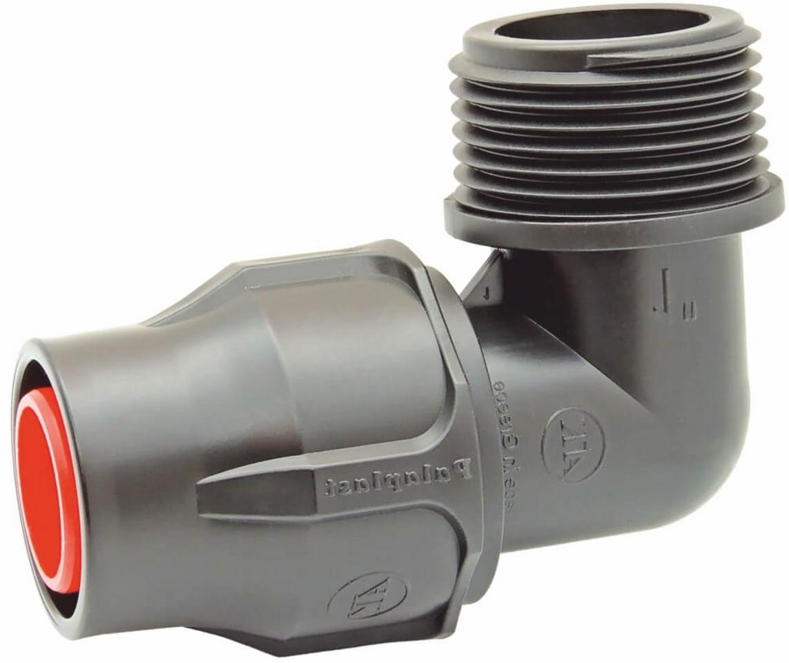Skrutkovacie koleno Lock 16 mm x 3/4"M je určené na vytvorenie pevného 90° rohového spoja medzi 16 mm kvapkovým potrubím alebo LDPE hadicou a komponentom s 3/4" vnútorným závitom.